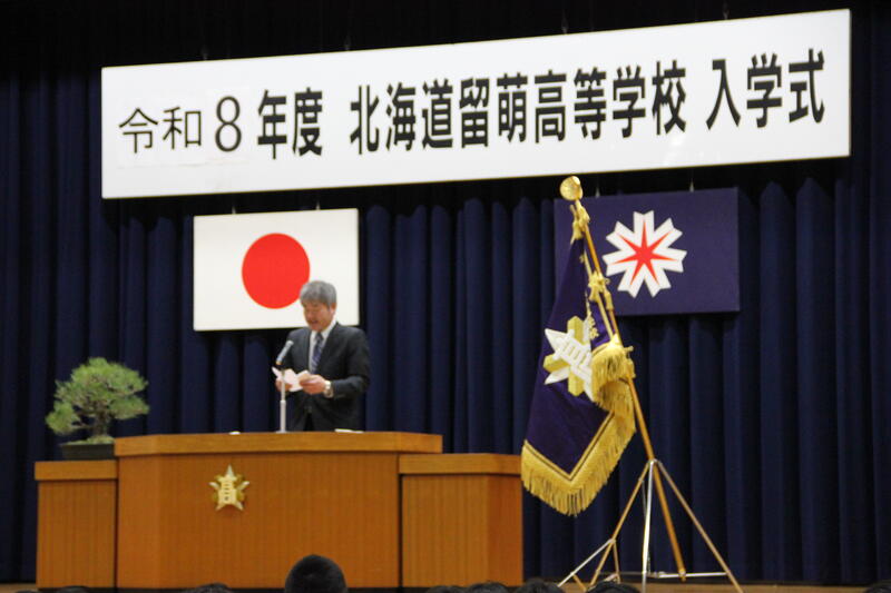 4月8日(水)13:30より本校体育館にて、令和8年度入学式を行いました。総勢125名の新入生が吹奏楽部の演奏と盛大な拍手に迎えられ、緊張の面持ちで入場しました。校長先生の式辞では、留萌高校の校訓についてや、高校生活を通して自分が夢中になれることを見つけ将来の糧にしてほしい、というお話があり、真剣な眼差しで聞く新入生の姿が印象的でした。式の最後には、生徒会執行部による校歌が披露されました。