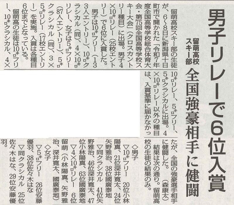 スキー部(全国高校スキー大会)平成21年以来の男子リレー出場で6位入賞!!