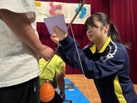 当日は、前半が射的や輪投げなどのアトラクションのお手伝いを行いました。後半はかき氷づくりや焼きそばやポップコーンの受け渡しなどを行いました。