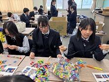 今年度は、4月20日(月)の放課後に留萌市総務課の方を講師にお迎えして、折り鶴から千羽鶴を製作する方法の講習会を行いました。製作方法を教えてもらった後は、実際に千羽鶴を作りながら、講師の方からアドバイスをもらっていました。