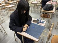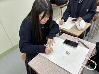 始めは歌詞カードを見ながら歌っていた生徒でしたが、音楽科教諭の指導のもと繰り返し練習し、最後には目線を上げて歌う生徒の姿も見られました。一人ひとりが積極的に取り組む姿が印象的でした。